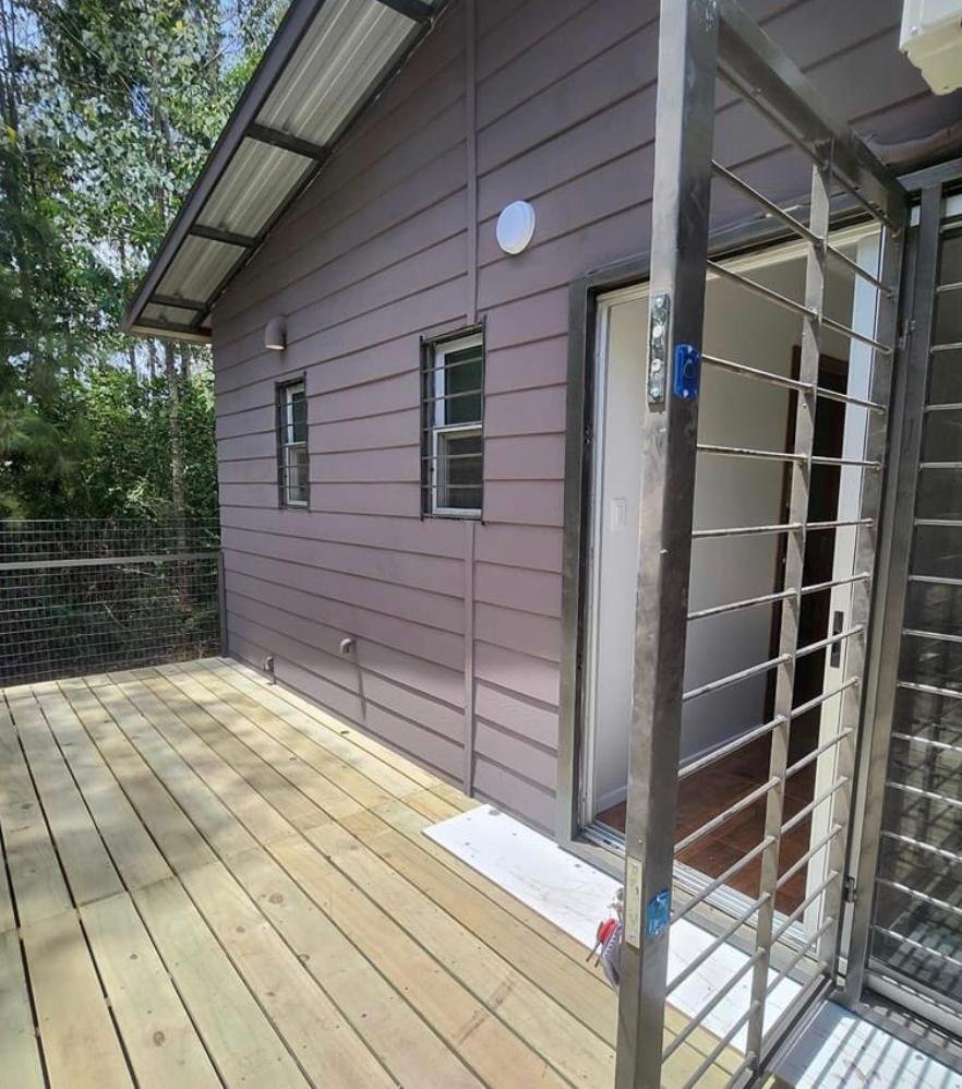 - Terraza de pino tratado con CCA (9,0 m x 3,0 m), perfecta para disfrutar del aire libre.