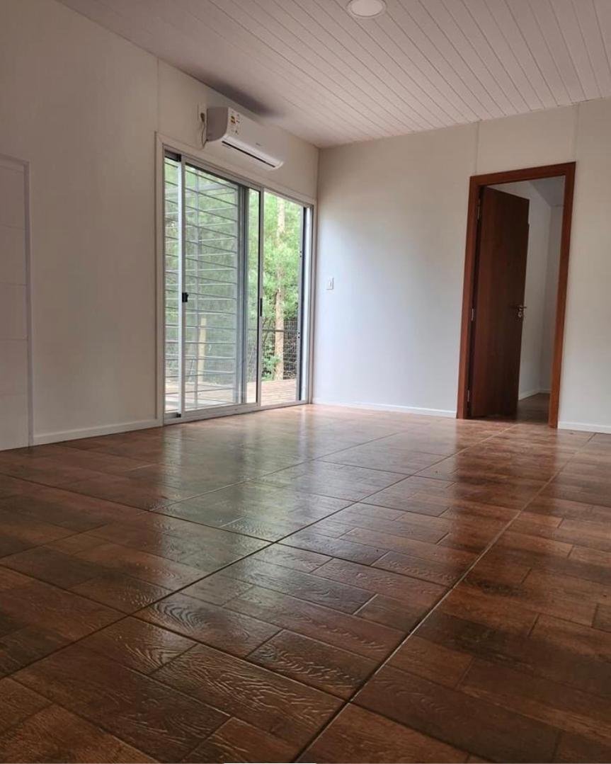 - Revestimiento exterior de fibrocemento imitación madera y lapacho, que combina durabilidad y estética.