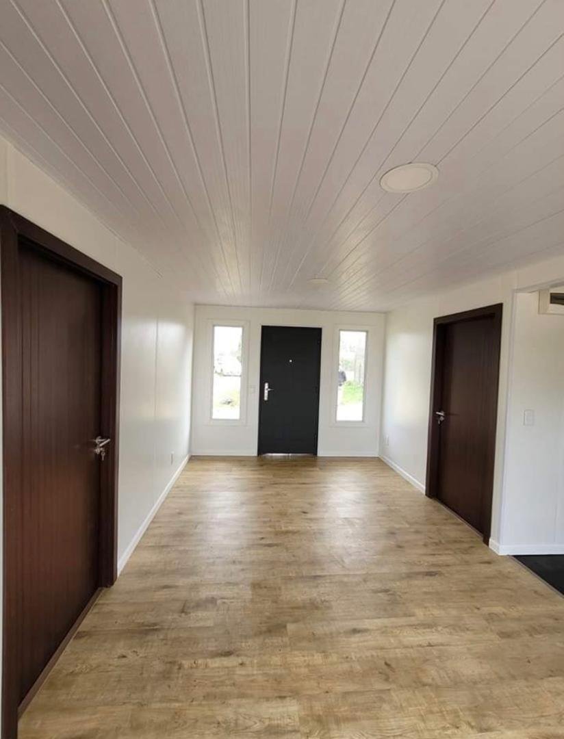 Suelo: suelo flotante de madera para un confort óptimo; suelo original del contenedor pintado con un revestimiento de fenoxi-epoxi para una mayor protección.