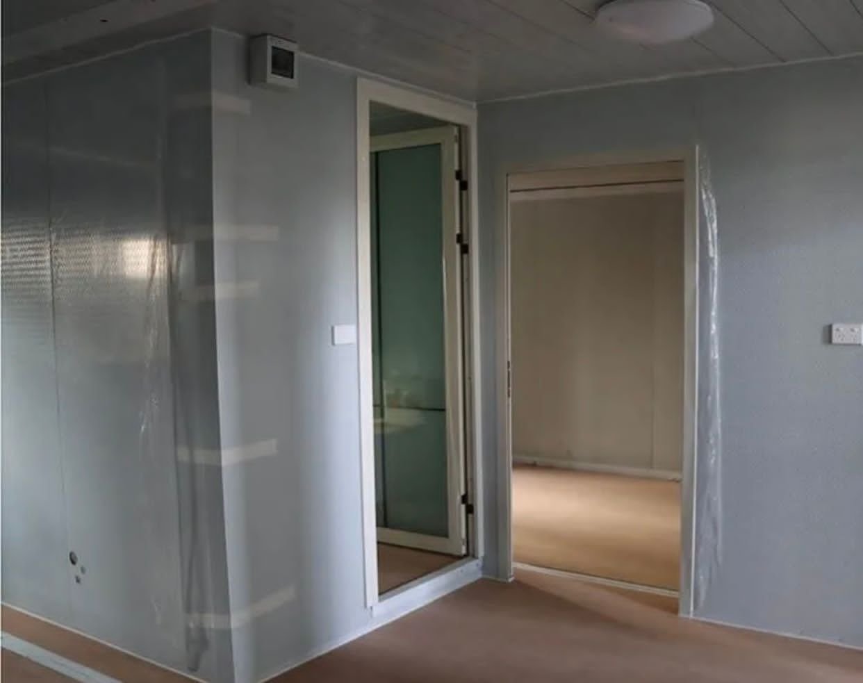 • Material: Paneles sándwich de EPS y fibra de vidrio (aislamiento R-7, espesor 50 mm)