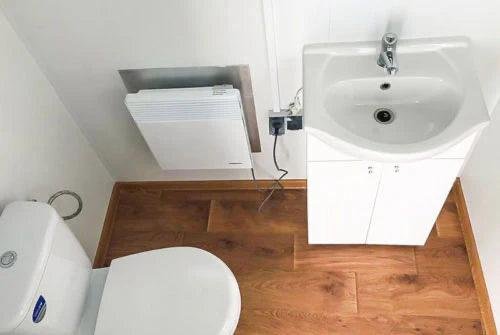 Charge maximale 200 kg/m² Tôle galvanisée 0,5 mm, 100 mm de laine comprimée, panneau OSB 22 mm de l’intérieur, revêtement de sol à ossature bois PVC.