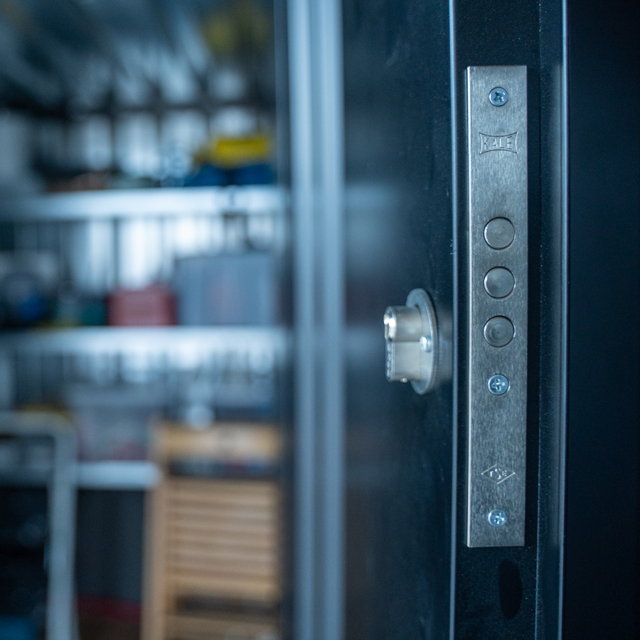El contenedor cuenta con una puerta doble de 1750 mm de ancho, lo que facilita el acceso a cualquier tipo de material o pequeña máquina. En cuanto a la seguridad, incorpora una cerradura doble de 3 puntos atornillada desde el interior, con las siguientes opciones disponibles: barra antirrobo, rampa de acceso, estantes (1 m o 2 m).