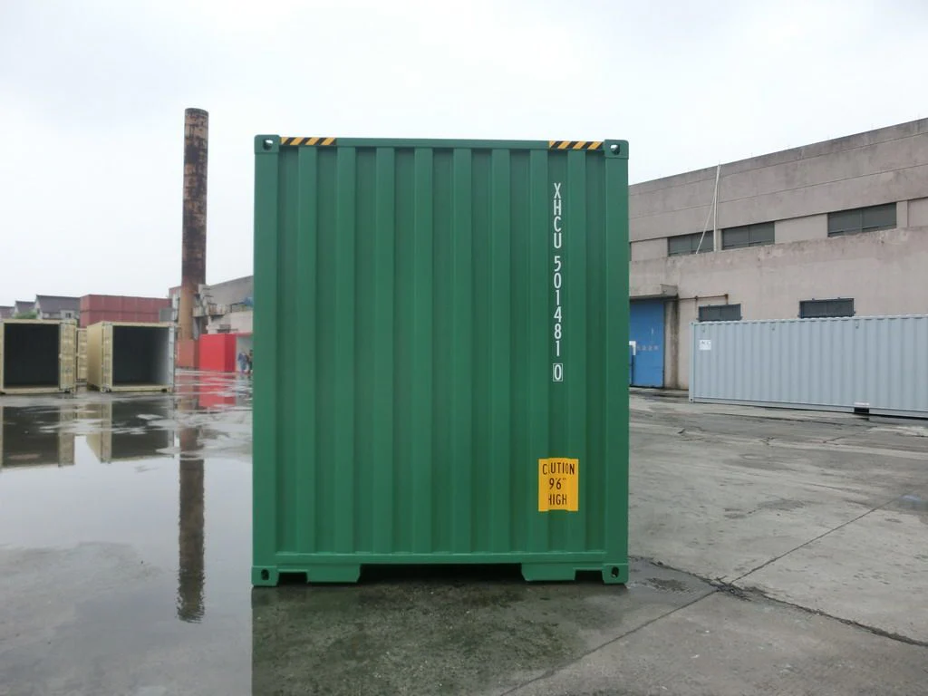 Este modelo dispone de una altura interior superior a la de los contenedores estándar, lo que permite alojar mercancías voluminosas o de mayor tamaño. Está equipado con puertas dobles en uno de los extremos, facilitando el acceso para operaciones de carga y descarga. El contenedor se presenta en color verde, un acabado utilizado habitualmente para la identificación visual en entornos logísticos, puertos o almacenes.