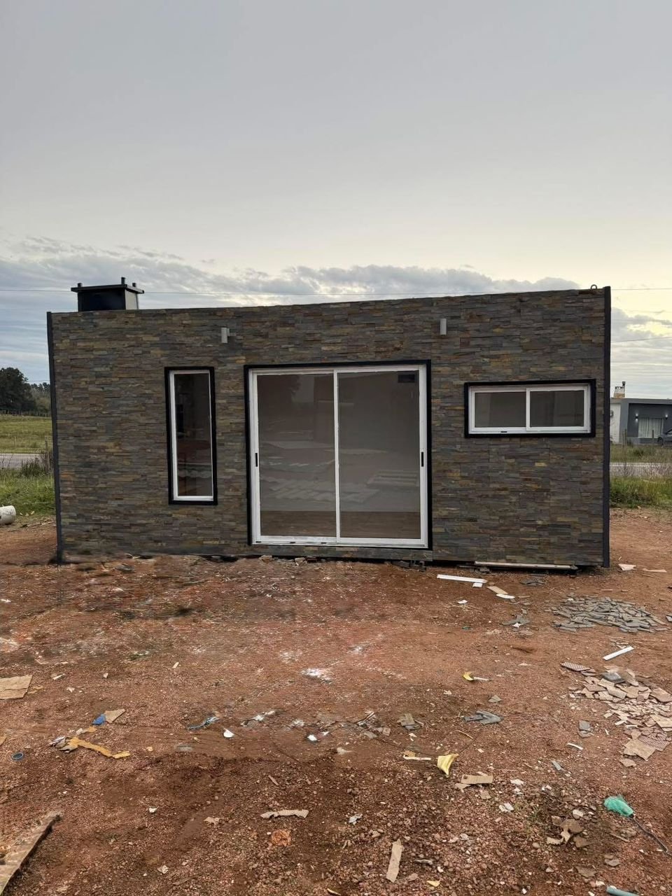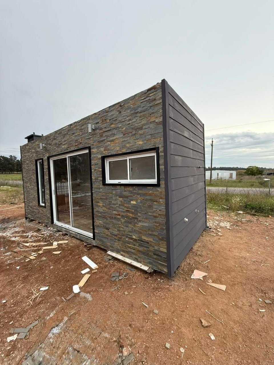 El exterior incluye tratamiento antioxidante, pulido y revestimiento con siding y detalles en piedra natural. En el interior se han instalado revestimientos melamínicos, cielorraso de PVC y aislamiento térmico y acústico mediante lana de vidrio aluminizada. El contenedor dispone además de baño completo, cocina equipada e instalación eléctrica lista para su uso.