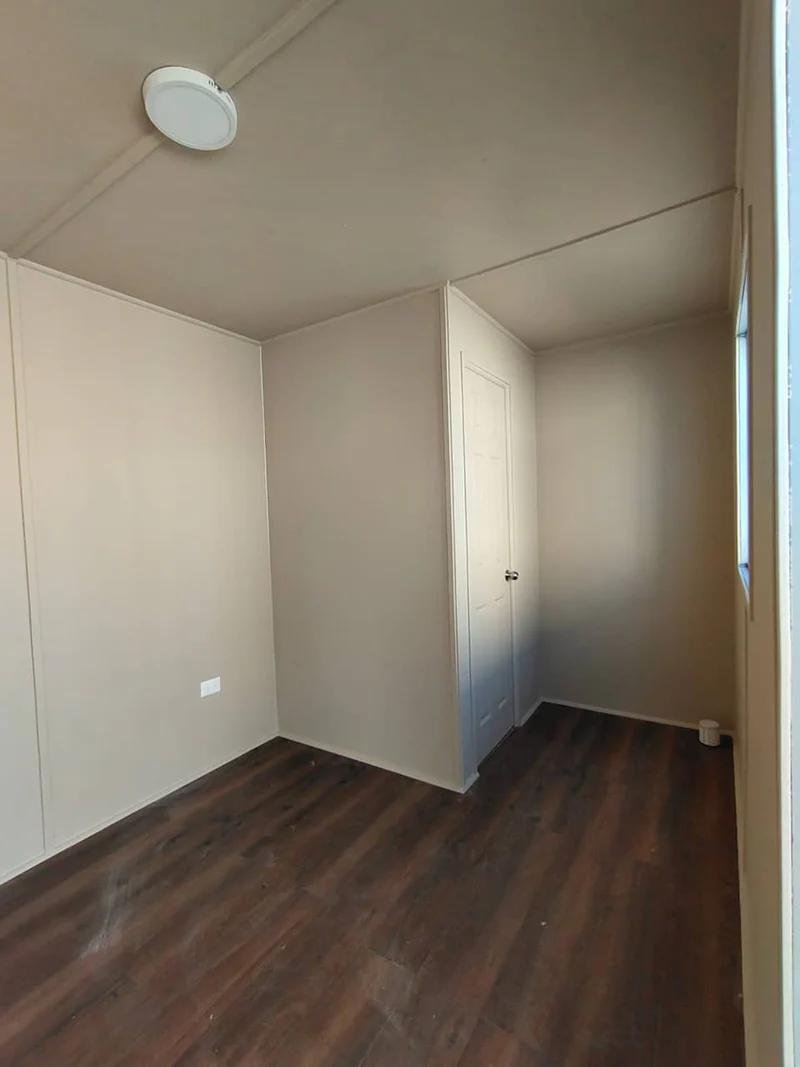 Panel estructural del módulo cubierto por tabiquería en madera pino, aislación de poliuretano proyectado fundamental para evitar condensación. Forrado interiormente en Yeso-cartón 10 mm esp. en muros y Fibrocemento Liso de 4mm en cielo, con terminación pintura esmalte al agua. Molduras, guardapolvos y canterías en Madera Pino Fingerjoint o MDF.