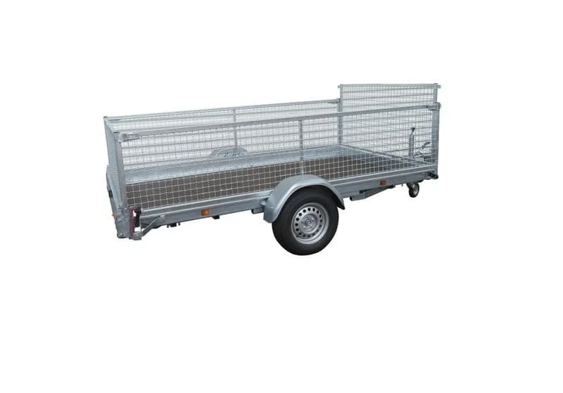El modelo Lider Robusto 36386 es un remolque de plataforma con sistema de frenado integrado y un eje, configurado para una masa máxima autorizada (MMA) de 1500 kg. Su superficie útil de 320 x 180 cm permite el transporte de materiales de construcción, maquinaria ligera, palets u otros equipos compatibles con su capacidad estructural.