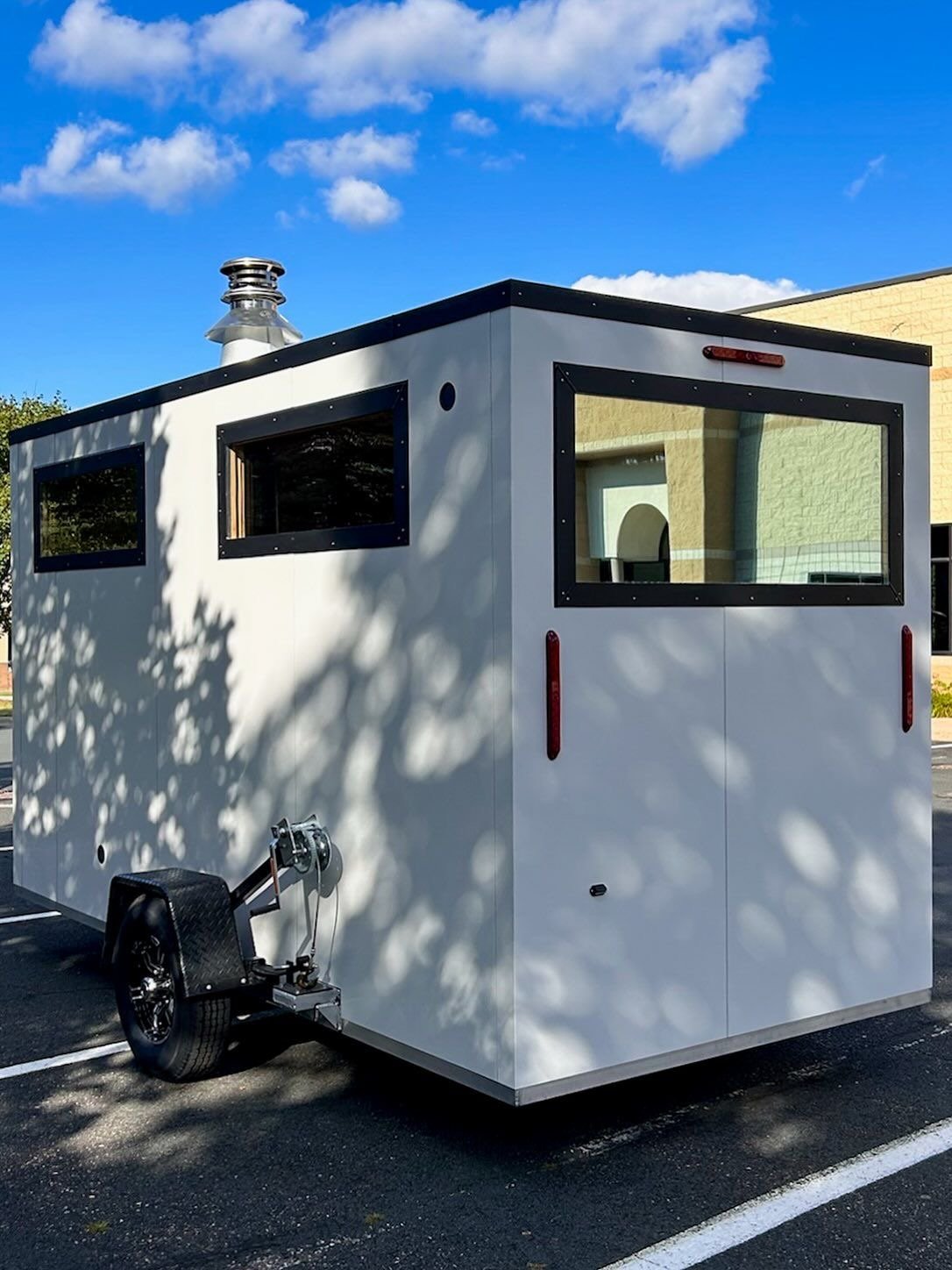 Remolque configurado como mini casa móvil con estructura portante metálica y cerramientos aislados. Su diseño compacto permite su utilización como vivienda móvil, oficina independiente o alojamiento turístico temporal, manteniendo dimensiones compatibles con transporte por carretera.