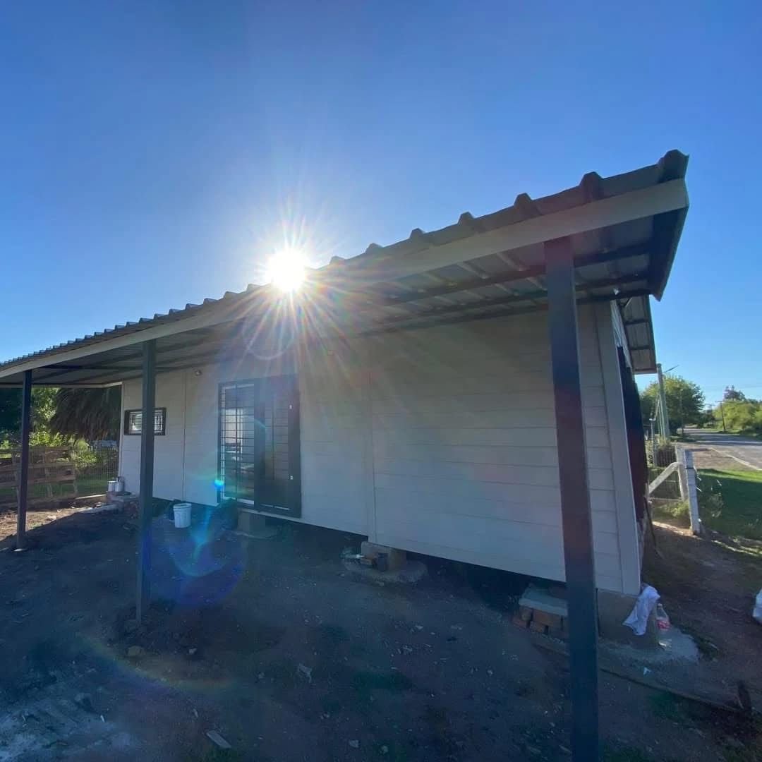 Estructura modular formada por dos contenedores marítimos de 20 pies tipo High Cube combinados con un módulo prefabricado de 4,0 metros. La superficie total aproximada es de 54 m². El conjunto incorpora cubierta superior a dos aguas y tratamiento de pulido con protección antioxidante en las superficies metálicas.